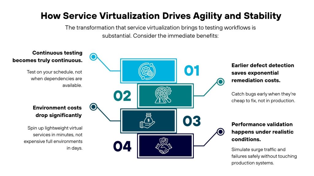- Accelerate time-to-market by enabling teams to test continuously without waiting for dependent systems.